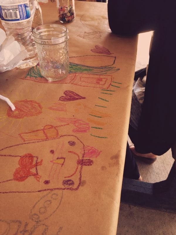 In September we usually have a lot of picnics to go to because of the beautiful fall weather. This year we had three picnics to go to! The first one was a special picnic party just for me. It was very fun! We put brown paper on the picnic tables and the kids could color on them and there was a bounce house! I jumped in the bounce house. I could touch the top of the bounce house! I would like to my aunt who made all the pretty decorations! <3